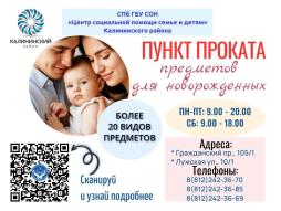 Услуги пункта проката предоставляются на безвозмездной основе семьям с ребенком (детьми) в возрасте до 1,5 лет, имеющим место жительства (пребывания) в Санкт-Петербурге
